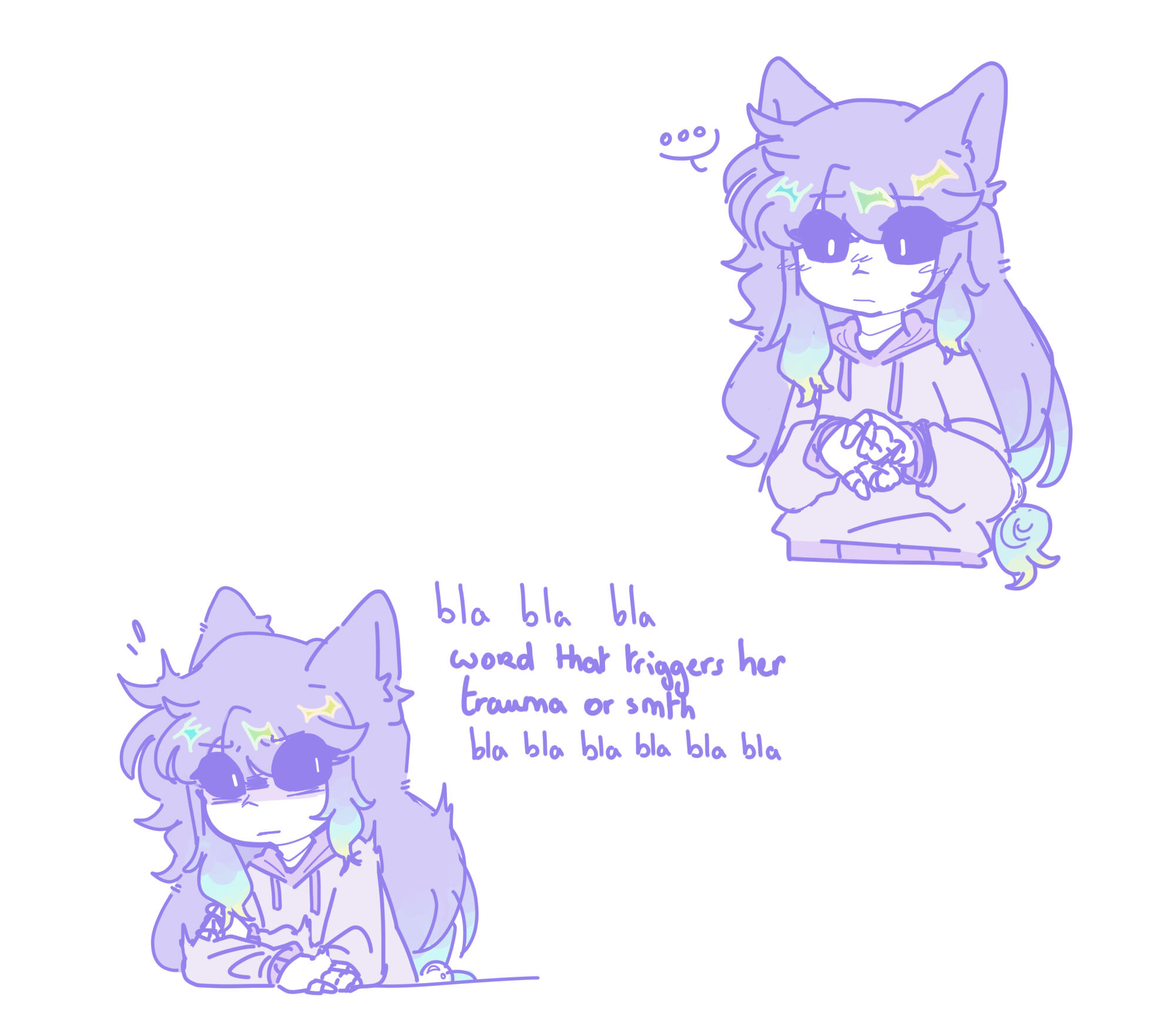 If I have multiple commissions on the table already, you will be told once I'm starting your commission, you should be getting a sketch within a month after that. (Please note it may take more time depending on my personal situation!)